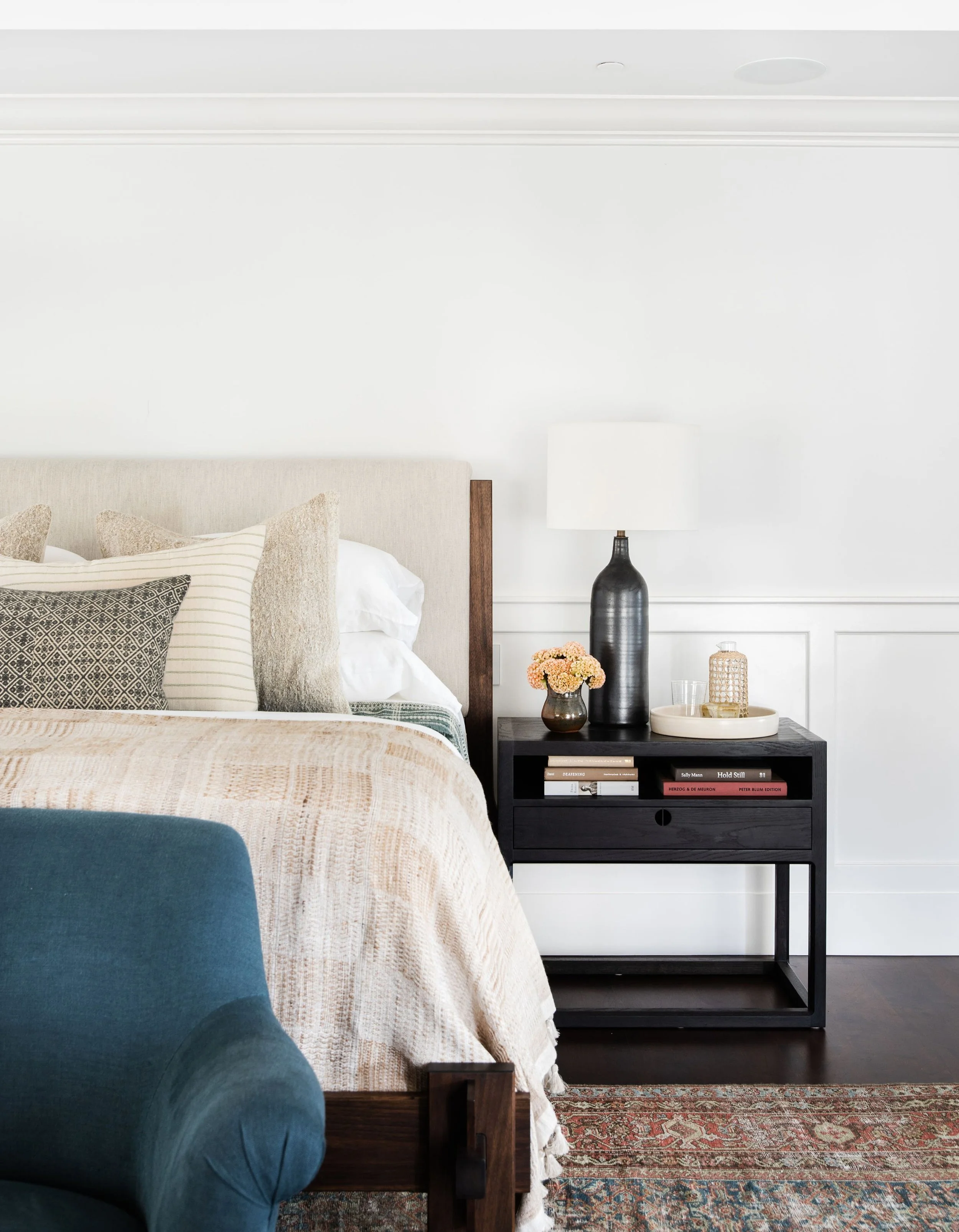 We love the way black contrasts with crisp white sheets and mixes perfectly with neutral accents like our favorite sisal rug and baskets.